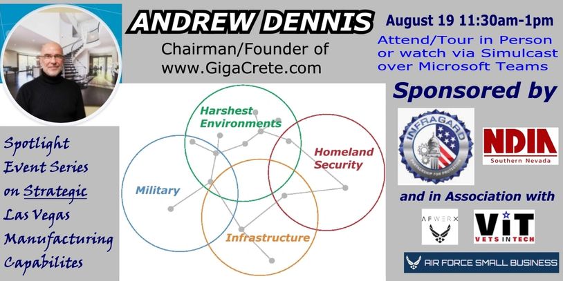 On August 19th, our NDIA Chapter is teamed up with InfraGard to simultaneously brief onsite and virtually at GigaCrete on their most advanced family of coating materials that transform an ordinary object/structure into a fortress of armor piercing protection able to withstand Category V Hurricanes and most all other natural disaster threats. Read all about their company capabilities at www.GigaCrete.com